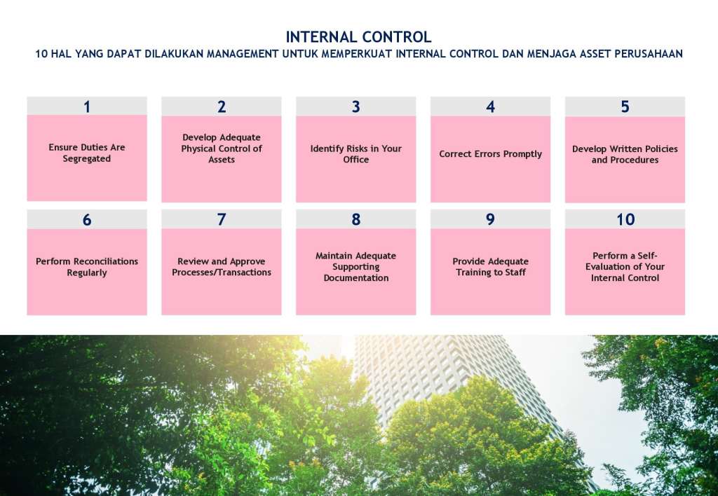 Berangkat dari empat elemen pokok tersebut ada 10 hal yang dapat dilakukan manajemen untuk memperkuat internal control dan menjaga aset perusahaan.