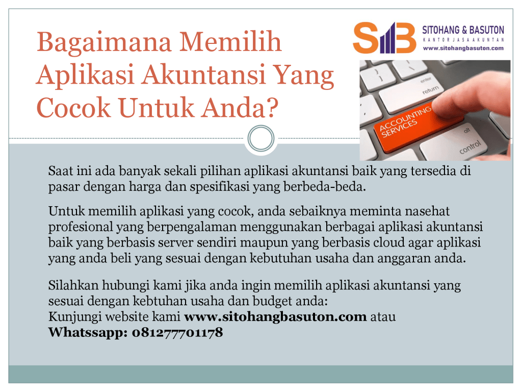 Dari pengalaman empirik para partner maupun klien Sitohang Basuton, anda sudah waktunya menggunakan sistim akuntansi yang dapat diandalkan jika anda berada pada salah satu dari situasi ini: