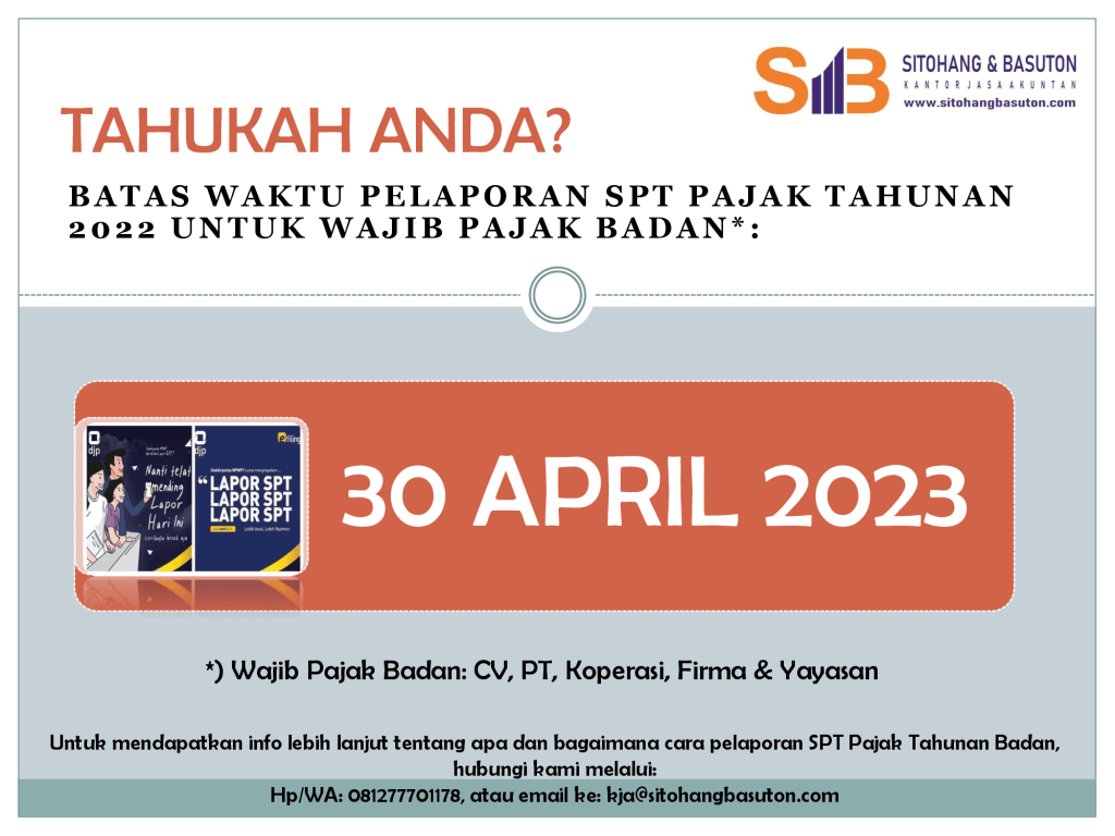 Batas Akhir Pelaporan SPT Wajib Pajak Badan Tahun 2022
