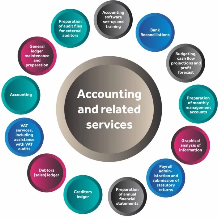 Deskripsi: Akuntansi outsourcing terjadi ketika bisnis menyewa kantor jasa akuntan yang dipimpin akuntan berpraktek yang berijin untuk menangani fungsi keuangan dan akuntansinya. Fungsi-fungsi ini dapat mencakup antara lain: pengelolaan penggajian, hutang dagang, piutang, rekonsiliasi bank bulanan, dukungan persiapan pajak, kepatuhan hukum, dan pelaporan keuangan.